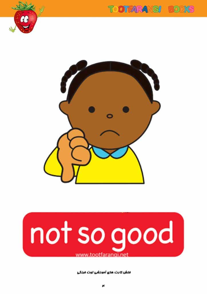 فلش کارت احساسات به زبان انگلیسی ، آموزش مفهموم برخی احساسات و لغات انگلیسی شامل good, great, wonderful, tired, hungry, not so good